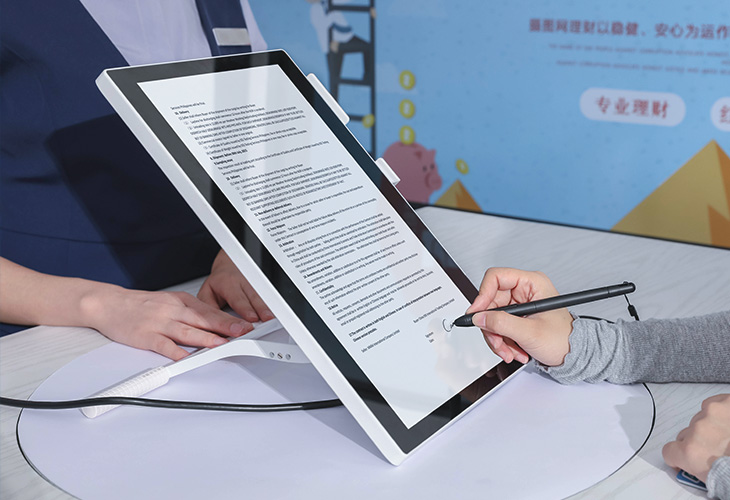 16-inch ultra large e-signing display with a fingerprint scanner.