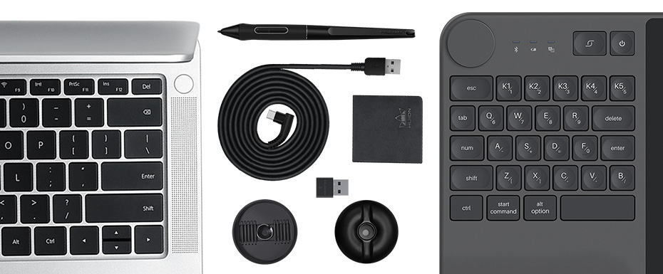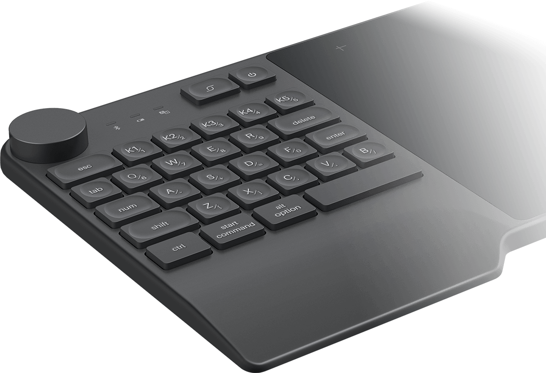 The first Bluetooth 5.0 pen tablet in the industry that creatively combines the pen tablet with a keyboard and dial controller.