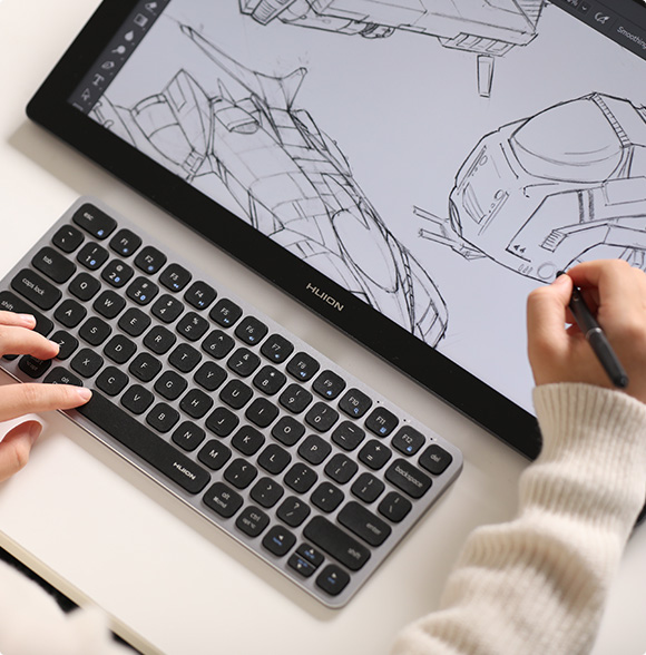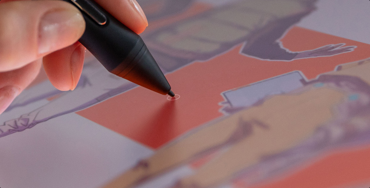 Ensuring precise pen performance is a top priority for Huion. With revolutionary PenTech 4.0, the edge precision[10] of the screen was enhanced, and tilt auto-alignment[11] decreased the cursor offset issues. Moreover, we've reduced the size of the pen nib[12] to prevent any obstruction of your line of sight that might occur.
