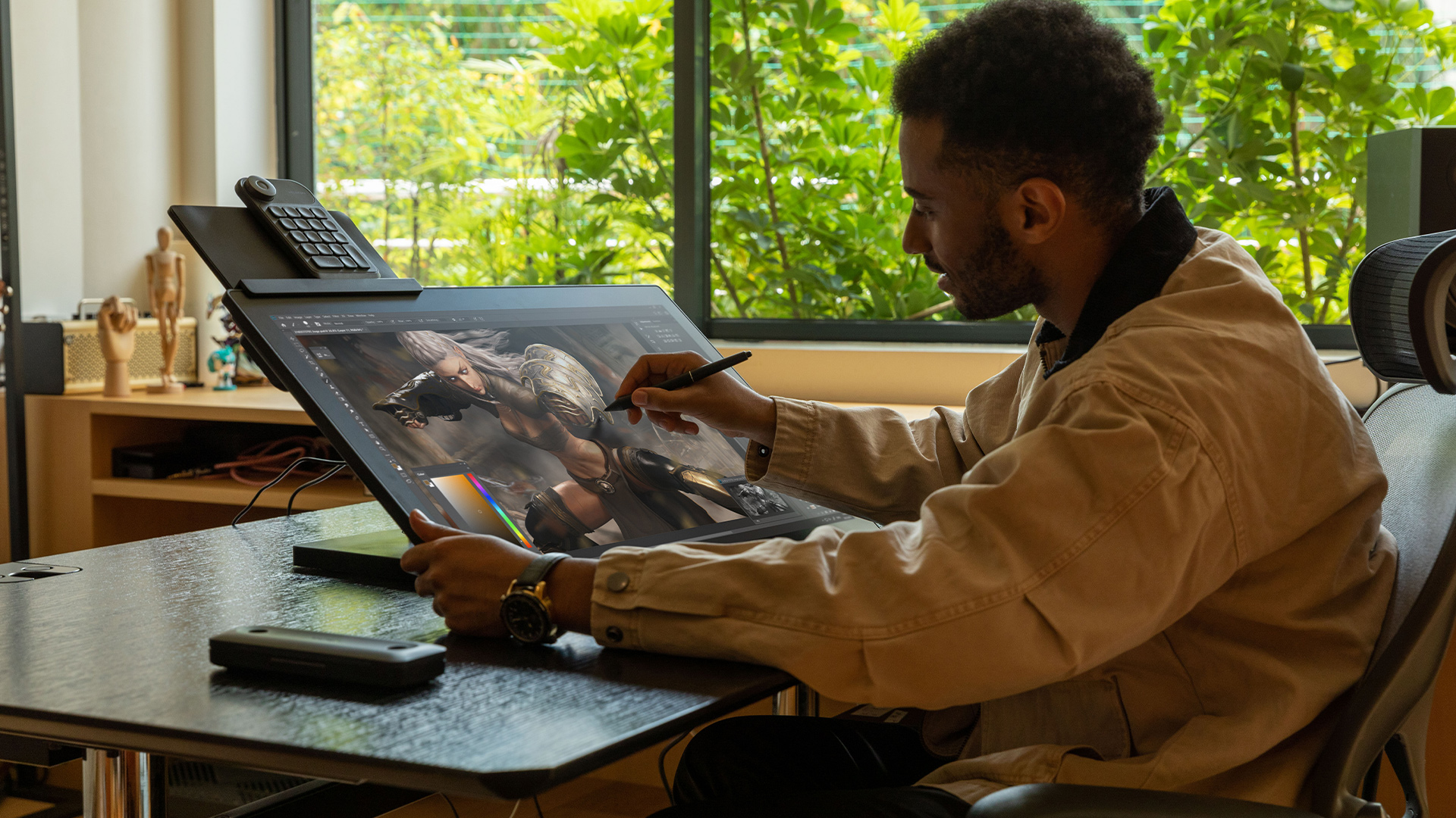 Maximizing workspace can be quite a challenge for artists. The independent keyboard and screen minimize the screen's footprint [21] on your desk while offering a variety of convenient shortcuts.