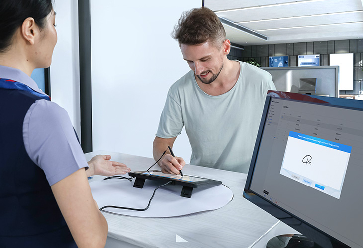 16-inch ultra large e-signing display with a fingerprint scanner.